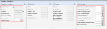 In order for users to have edit access to the following fields in the Disclosure Tracking Tool, their assigned persona must be configured with the Change Disclosure Information access right. If this option is not configured in their persona, these fields will be inactive for the user.