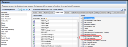 Review personas in which you would like to implement this change. When this option is enabled for that persona, users will have access to all of the fields in the Tolerance Cure section of CD Page 1 and the Fee Variance Worksheet. The Cure Variance button will also be enabled. If you have some users that share the same persona, but you do not want them to have access to Tolerance Cure fields, you will need to create another persona with access to this feature.