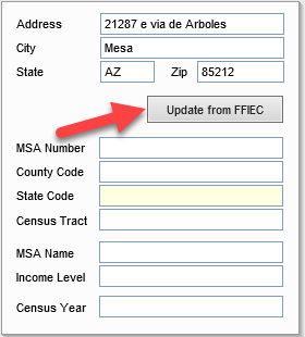 Gathering information like the MSA Number, County and State Codes, Census Tract, and other FFIEC data typically requires that a user manually visit the FFIEC website and enter the subject property address to gather this information and then manually enter it into Encompass. This can be time consuming, and due to manual entry can be prone to typographical errors.