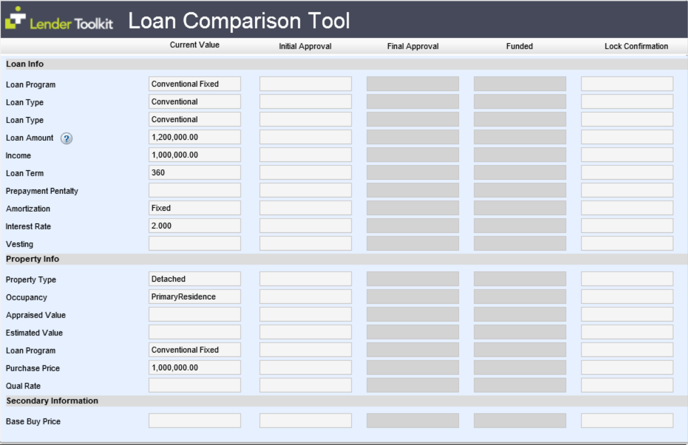 The Loan Comparison Tool plugin in Lender Toolkit’s suite of PowerTools™ is a powerful, dynamic tool that solves this problem. It gives Encompass® Administrators total control over which fields to monitor, as well as when snapshots will be taken, capturing the value of fields at key events in the loan process.