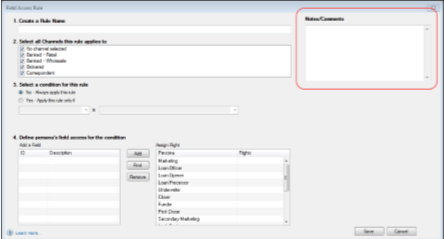 A new Notes/Comments field has been added to the following business rules in Encompass Settings.