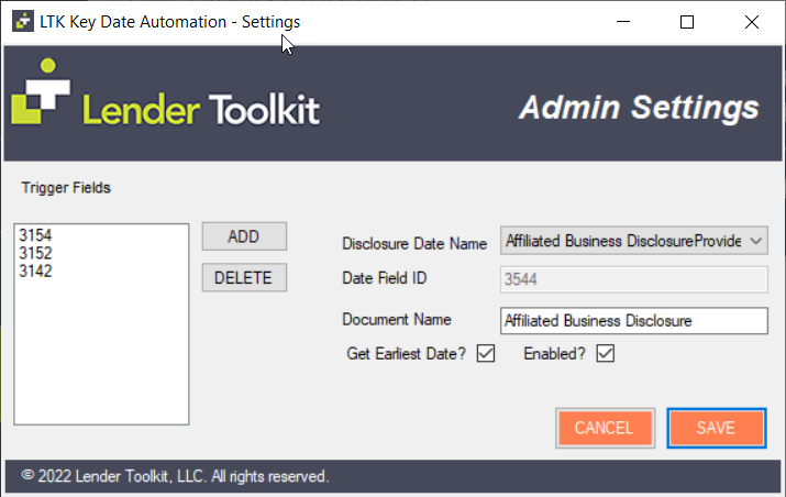 Automating the dates that required disclosures are sent improves data integrity, while simultaneously reducing the time users must spend manually entering disclosure dates when documents are sent. Compliance reporting and reviews of loans can be completed more efficiently when the dates are reliably automated.